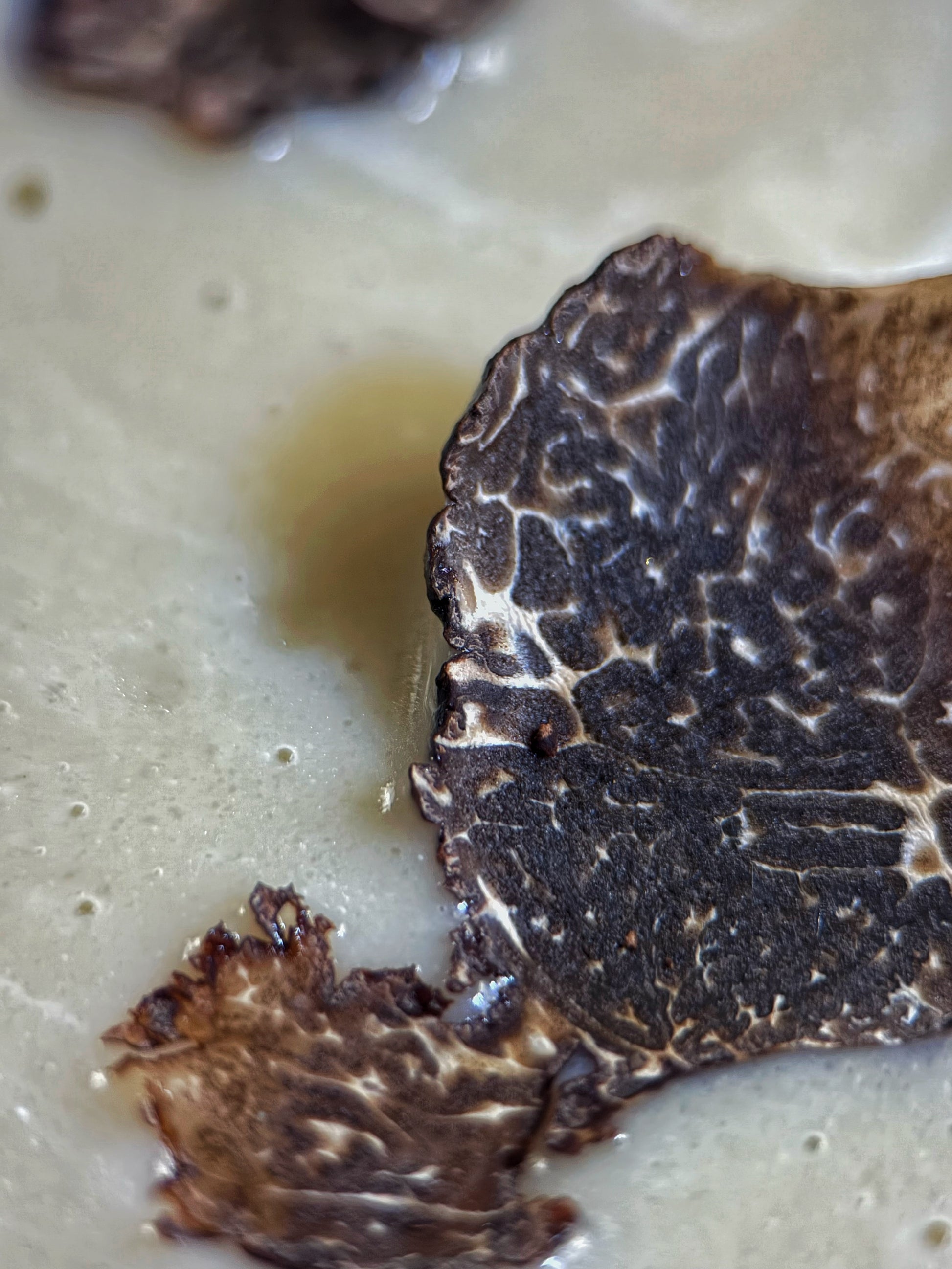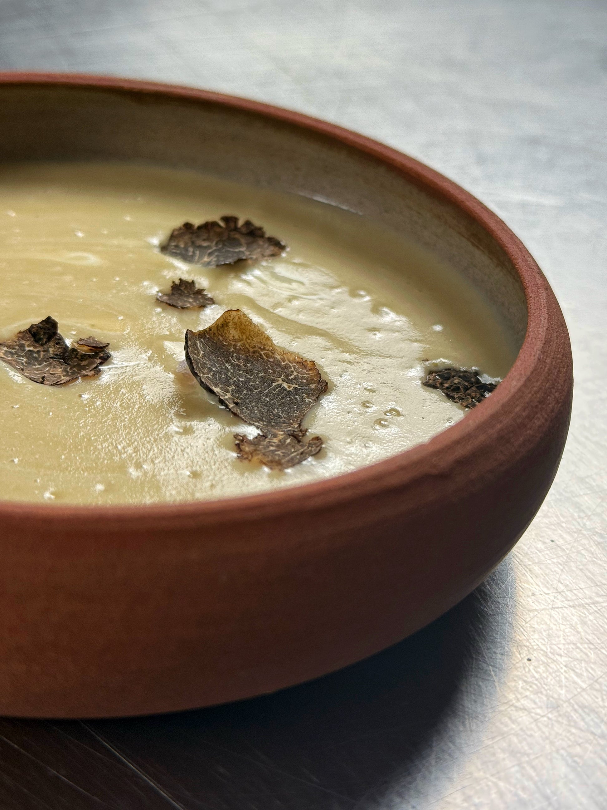 Commencez votre repas avec un délicieux velouté de topinambours sublimé par des copeaux de truffe.